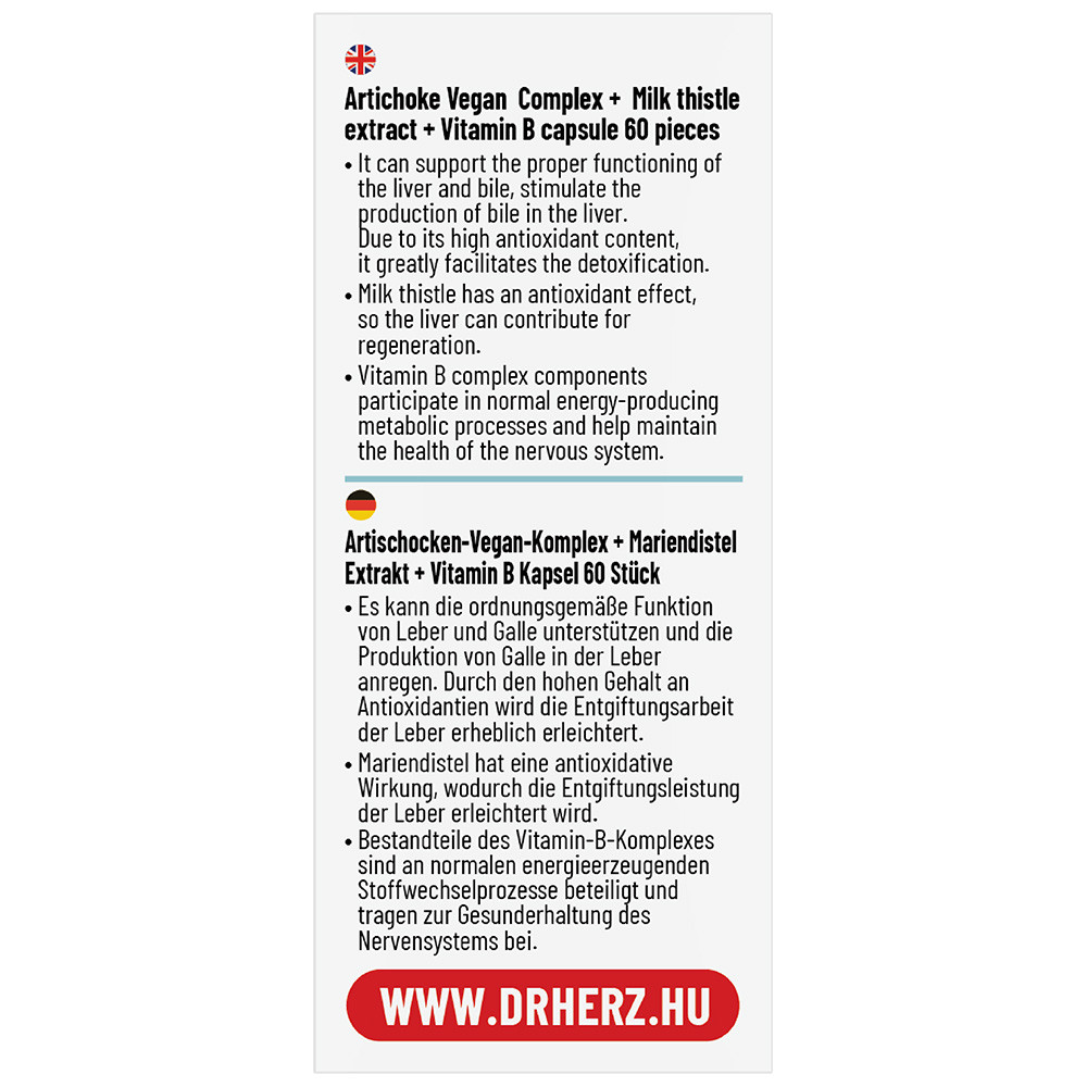 Összetevők: articsóka levél kivonat (cynara scolimus l.), máriatövis termés kivonat (silybum marianum), niacinamid (B3-vitamin), kalcium-d-pantotenát (B5-vitamin), riboflavin (B2-vitamin), piridoxin-hidroklorid (B6-vitamin), tiamin-hidroklorid (B1-vitamin), tömegnövelő szer (kukoricakeményítő), csomósodást gátló anyag (mikrokristályos cellulóz), kapszulahéj (hidroxipropil-metilcellulóz)